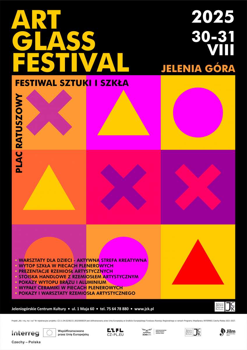 Art & Glass Festiwal jest realizowany w ramach projektu „Wy i my, my i wy” Nr rejestracyjny projektu: CZ.11.04.02/00/23_003/0000029, który jest dofinansowany przez Unię Europejską ze środków Europejskiego Funduszu Rozwoju Regionalnego w ramach Programu Współpracy INTERREG Czechy-Polska 2021–2027.